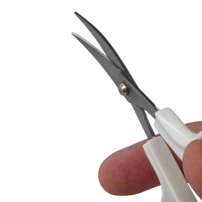 Small, sharp scissors with curved blades, perfect for clipping threads close to the fabric and trimming jump stitches without cutting the work itself.